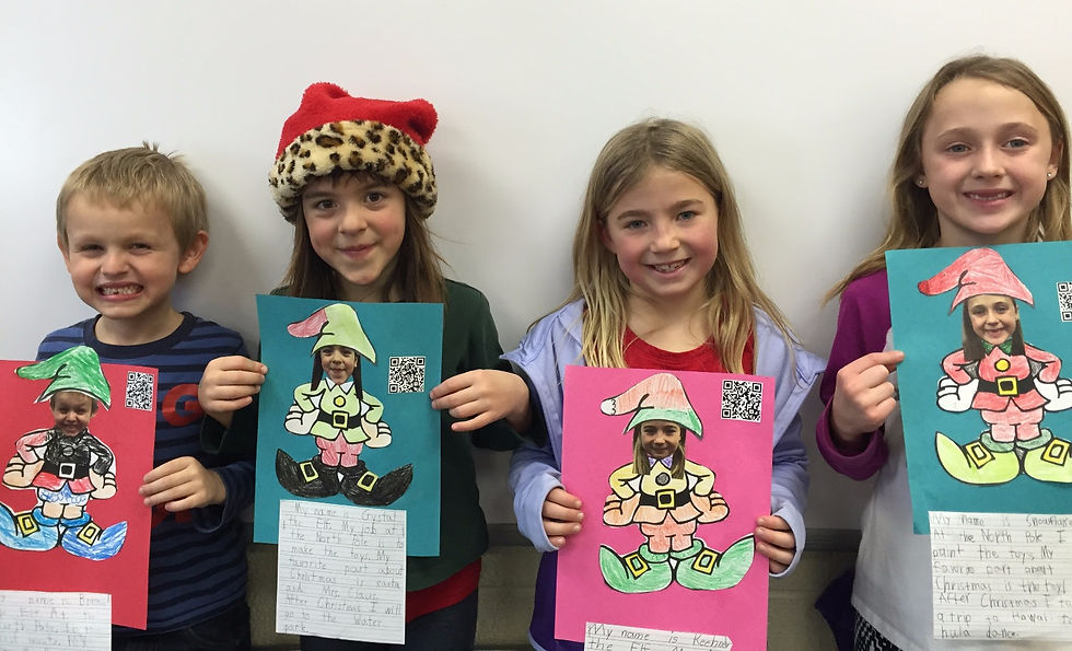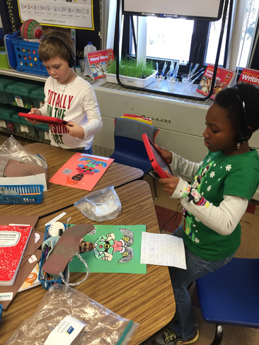 Our 1st grade class was as busy as elves before Christmas. The 1st graders began by writing a rough draft for their elf story, they then worked hard to publish a final copy. After the final copies were all complete the 1st graders got to record their stories and share them with the class.